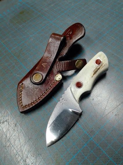 Un buen amigo mío hace unos cuchillos de lujo, el plazo de entrega de diez a doce días, el acero es D2, los encabados en asta 100 euros y en madera 85, ambos más envío, son artesanos 100% tanto el cuchillo como la funda.
