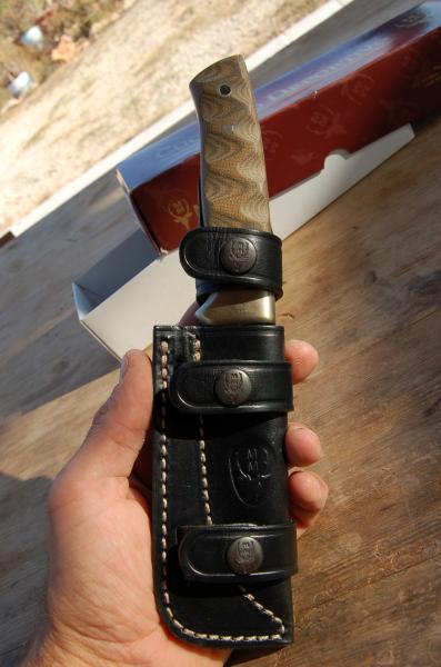 Vendo por no usar, Muela Kodiak nuevo, nunca usado y con caja, en acero Sandvick 14C28N, cachas de micarta y virola metálica. Funda cuero multiposición. 65 euros envío incluido.