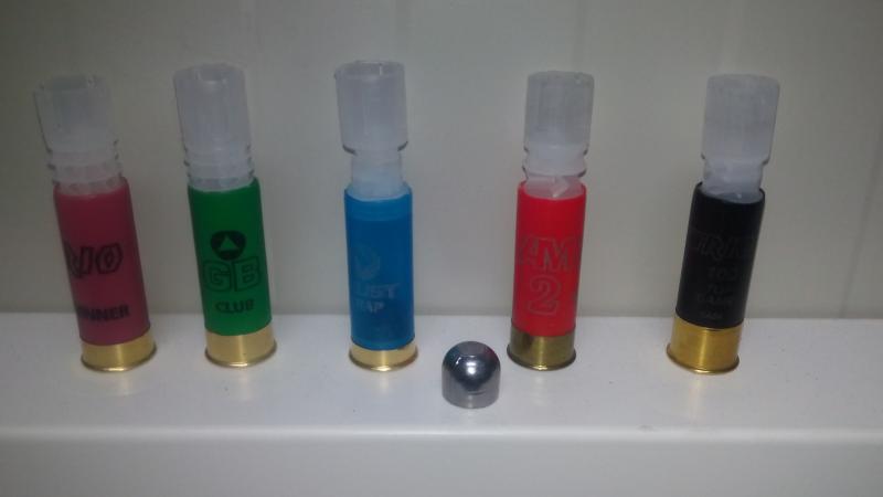 La bala en los tacos entra con una ligera presión en ellos, sin forzar nada, incluso montada en el cartucho con un ligero meneo se sale, pero a la hora de meter taco y bala por la recámara no hay manera, el diámetro de la bala son 17'1mm medido con micrómetro, las paredes de los tacos me dan 0'7 en los sacados de unos GB de 32 gramos por ejemplo, y el cañón viene marcado con 18'2,