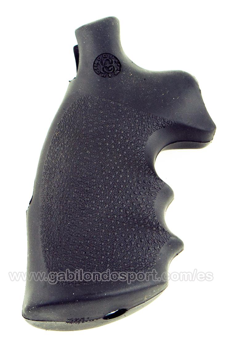 Cuidado que hay una para "round butt" que se ve igual que la de "square butt". Mira las fotos. Estas son Hogue. En la etiqueta de una se lee "Smith & Wesson K and L frame, Square Butt", y en la otra "Smith & Wesson K and L frame, Round Butt", pero de aspecto externo son iguales. Yo tengo un 686-3 en 6 pulgadas, y la que le vale es la Square Butt. La otra, no. De todas formas, quítale las cachas a tu revólver y mira cómo acaba, si en pico o redondo. Te pongo fotos. Un saludo.