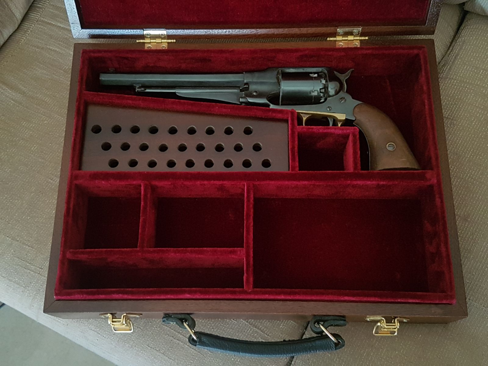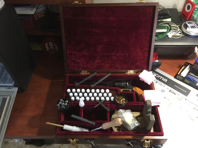 Esta para un Remington 1858. con tercioelo azul oscuro, y cerradura embutida. Esta se quedó en Almeria, gracias Juan A.