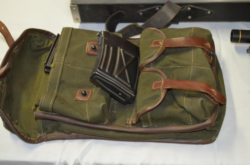 vendo dragunov con todo su equipamiento : portacargadores con la baqueta , 3 cargadores de 10 tiros y uno de 2 ; su bayoneta original con su numero correspondiente al igual que los cargadores : su visor original con su funda original ; aparte le puse un culatin para alargar un pelin la culata para ir a cazar : dos monturas originales para un visor de caza Leopold de 1-4 x20 y otro para un punto rojo : la correa porta rifle . En su maletin correspondiente . Todo su conjunto por 2300 euros
