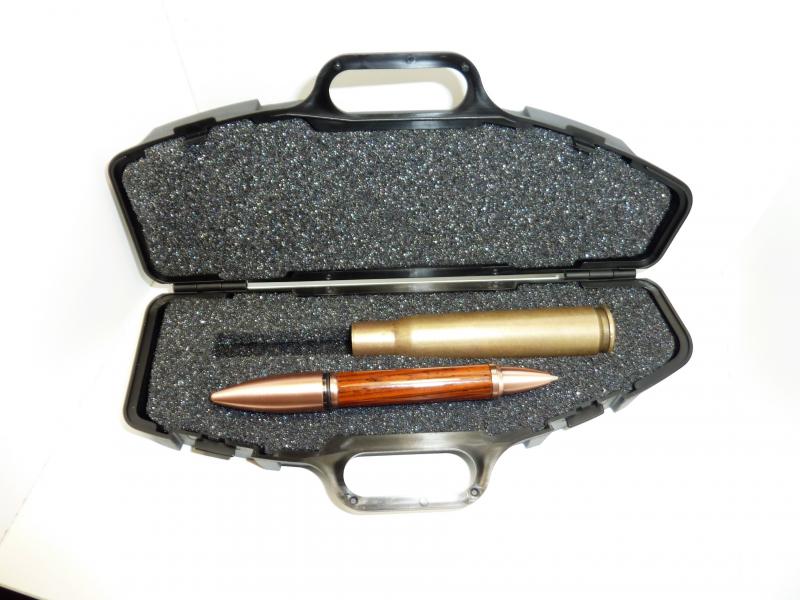 Precioso Bolígrafo que hará las delicias de cualquier coleccionista, aficionado a las armas caza o tiro al blanco, elaborado con un Casquillo real de bala calibre 50 con la inscripción WCC 07, procedente de EEUU Western Cartridge Co. de East Alton (Illinois). que una vez disparado se ha combinado con un cuerpo elaborado de forma artesanal en madera de Cocobolo, árbol nativo de las regiones de Meso-América, desde México a Panamá. Es posiblemente una de las más hermosas y llamativas maderas por los increíbles colores, tonalidades y figuras que presenta. Finalmente, se le ha dado un acabado de alta calidad con varias capas de cianoacrialato y pulido al agua con lijas especiales hasta grano 12. 000, realzando así su belleza natural y aportando mayor durabilidad y brillo. Se entrega con una hermosa caja en forma de maletín de rifle. Se puede elaborar con más de 40 especies de maderas a elegir, hasta de ciervo, cuerno de búfalo, etc. , incluso con sus propias maderas que por cualquier motivo quiera conservar de esta forma tan original.