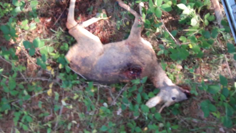 No sé no sé.... pero ese remolque con el cartel de animales vivos.... La corza no parece estarlo ¿no?