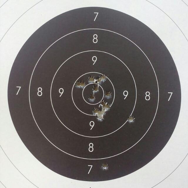 60 disparos 18 dieces y 22 nueves conté. Todavía tiene el alza de combate, le tengo que poner una micrométricas de precisión.