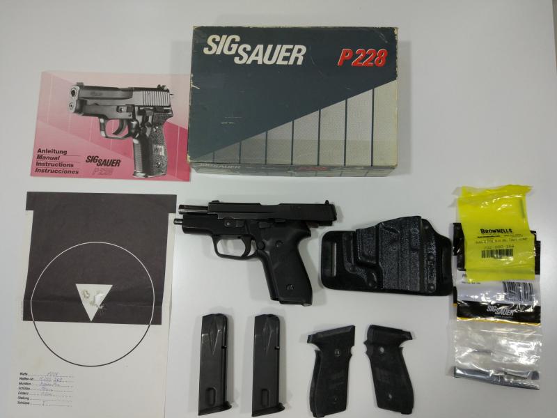 Vendo Sig Sauer P228 9Pb con dos cargadores,guiada en F. Cachas Hogue y funda Galco de Kydex y cuero. Regalo pasadores originales. Caja e instrucciones originales. Conmigo tiene 250 disparos. Pido por ella 300€