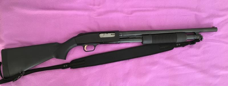 Mossberg 500A, culata y guardamanos cambiados por sintéticos, tres tubos