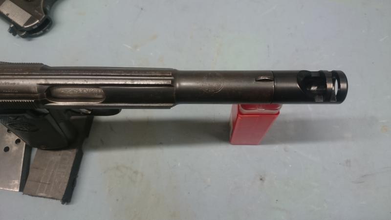 Hola, Os dejo las fotos del freno de boca ya pavonado y montado en la pistola del compañero. Como podeis observar la pistola ha pasado tiempos mejores y se nota algo la difrencia de color entre el arma y el freno.