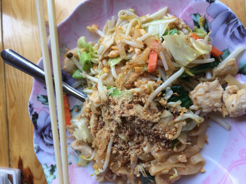 En este barrio el coste de comida Thay es más o meno 3 euros con bebida y la habitación 8/12 euros,depende se hay aire condicionado (recomendado) o ventilador de techo.