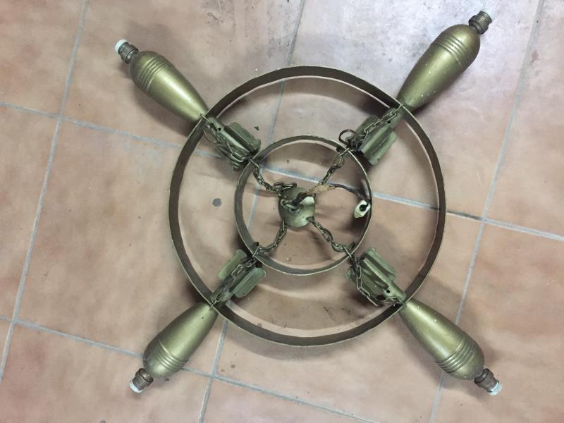 Se vende lampara totalmente artesanal, realizada con granadas de mortero de 60 mm. 70€, envío a parte.