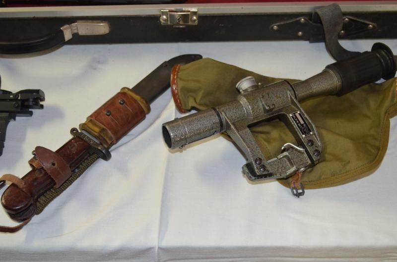 Visor original otro con su montura leopold 1-4 24 otro con su montura con punto rojo, bayoneta original una larga y otra corta portacargadores con uno de 2 cartuchos y tres de 10, su maleta