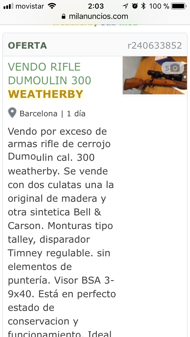 furas escribió:Senik escribió:cutis escribió:El browning BBR es un buen rifle, con un cerrojo multi teton tipo weatherby Mark V , la madera es un poco tocho , pero es bueno rifle