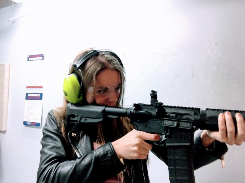 Y despues para que probaran algo ruso, un AK47, aunque no lo parecia. Un Kalashnikov debe venir con sus maderas, eso de vestirlo de Magpul es lamentable. No se si se aprecia la cantidad de vainas que hay por el suelo. Aqui la gente cuando viene a tirar, tira y bien.