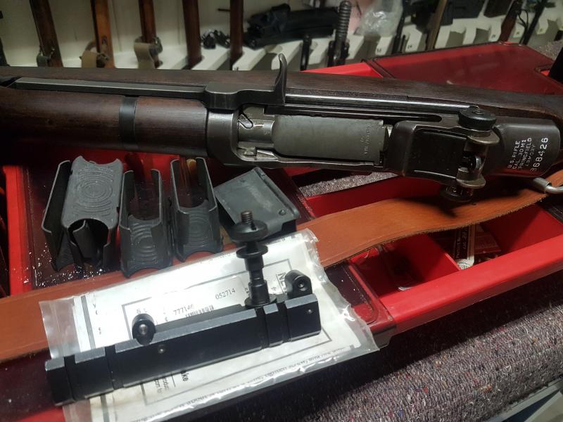Garand importado de Estados Unidos ya preparado para tiro de precisión. fabricado por Springfield en enero de 1944, Montura Accuracy Speaks, (Derrick Martin), Visor leupold Vlari-x III 6,5x20 de 50mm. Freno de boca. Bateria de disparo ajustada. Preparado Thumbhole por Springfield Armory Custom Shop según tengo entendido. El clip esta modificado para no ser expulsado, se carga cartucho a cartucho por arriba. Una belleza.