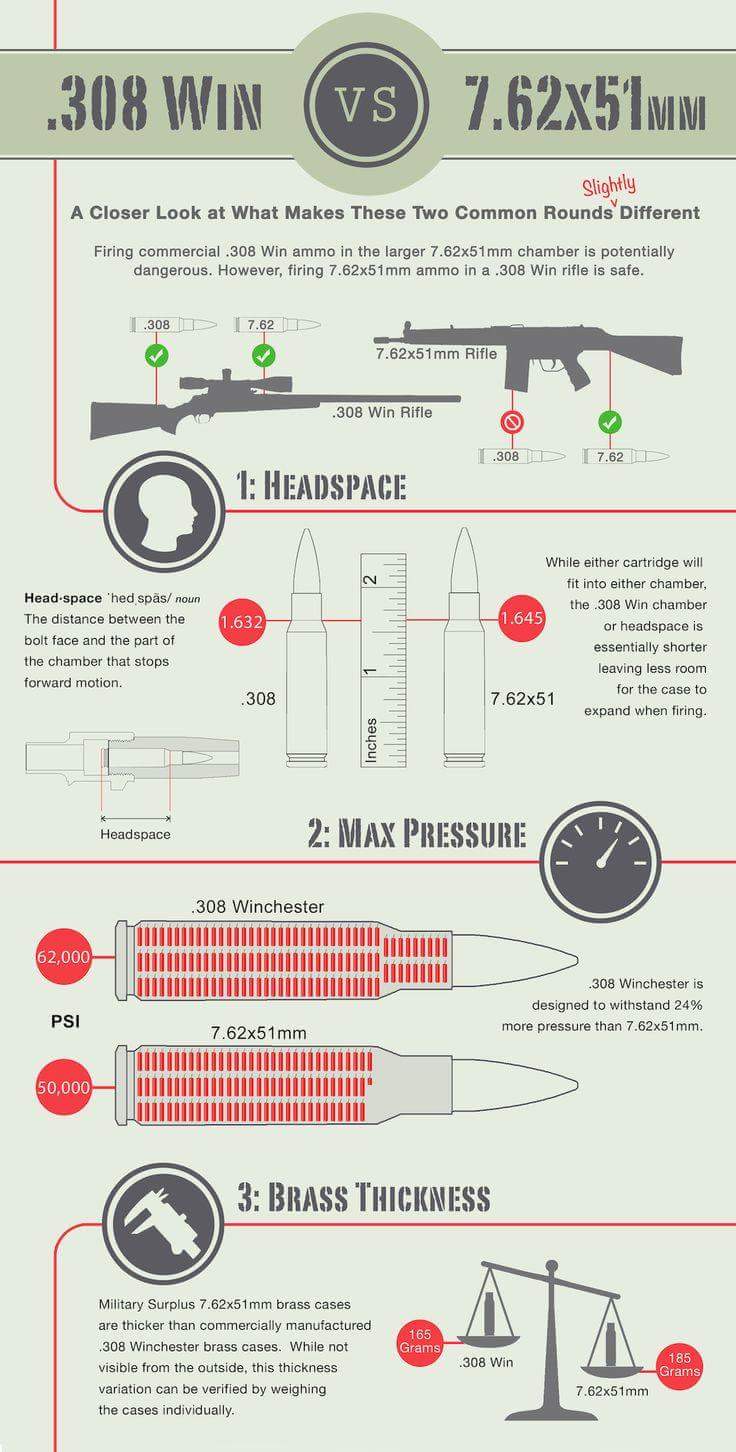 Cómo sabrás el 308 y el 7.62x51 no es lo mismo....... dispara un 308 desde un 7.62x51 y veras.........