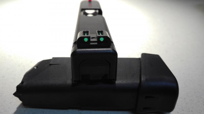 Cambio Glock 26 Gen3 con miras de fibra Truglo más las originales, dos cargadores de 10 y 12, retenida del cargador sobredimensionada y maletín original, por Glock 19 Gen3 ó 4. Tiene bastantes disparos, sí, y otros muchísimos más que le quedan. Esta no ha estado quieta precisamente. Está en Murcia no capital y guiada en A.