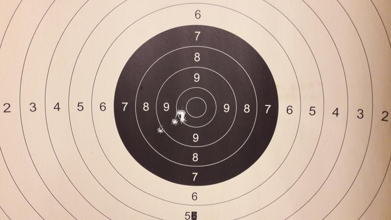 Un detalle del buen hacer del Santa Bárbara GREDOS . Son cinco disparos con sus miras abiertas, a 50 mtrs con apoyo y munición S.B.