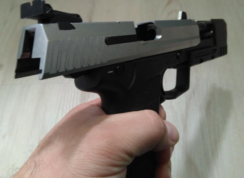 Hola, se vende (muy a mi pesar y por necesidad)  una preciosa HK USP match bicolor del 9 parabelum, dos 90
