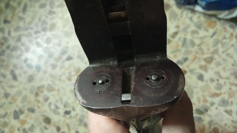 Tiene una aguja aparentemente rota, y una pieza que no tengo muy claro para que funciona, me parece recordar que en algún sitio leí que es una lagrima, pero en escopetas "clásicas" soy un profano