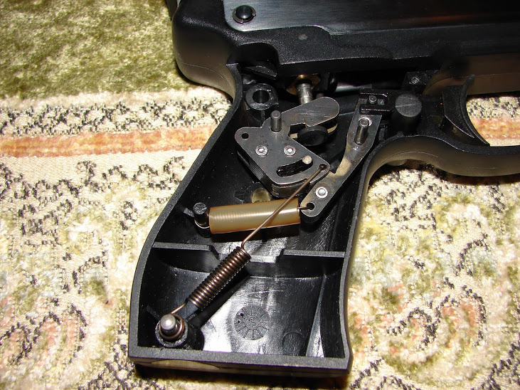 Estos son los mecanismos bajo la empuñadura de la AF-10 y el vástago de la válvula.
