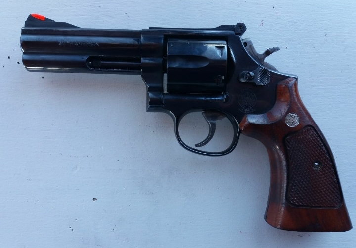 Revolver S&W 586 357mg, 4 pulgadas, dos cargadores rápidos, el alza tiene la pletina rota al guardar en armero por eso precio 150€.Y kit de limpieza.