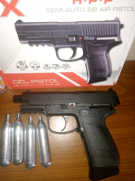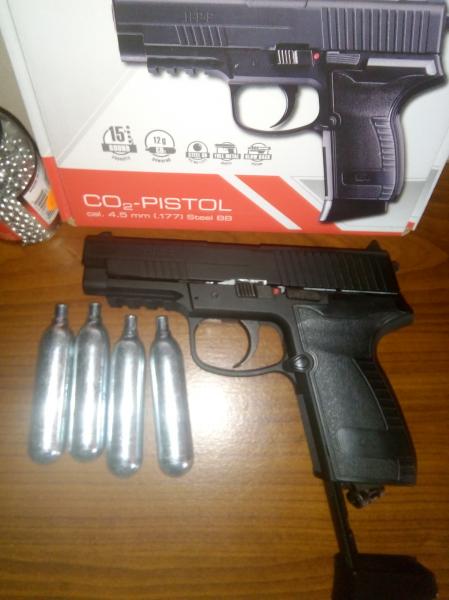 Hola. Busco carabina 5.5 o pistola para enfocar más a precisión. Esta a gastado solo 4 bombonas. Dos tardes. Regalo de comunión. Es fullmetal y la corredera se mueve al disparar, muy real. Escucho ofertas, en mano mejor para ver y probar esta impoluta. Un saludo.