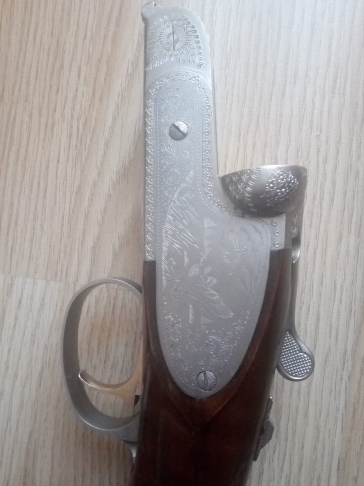 Cómo se saca la báscula de la culata, de esta escopeta paralela de un gatillo selectora. Solo se ven estos tres tornillos