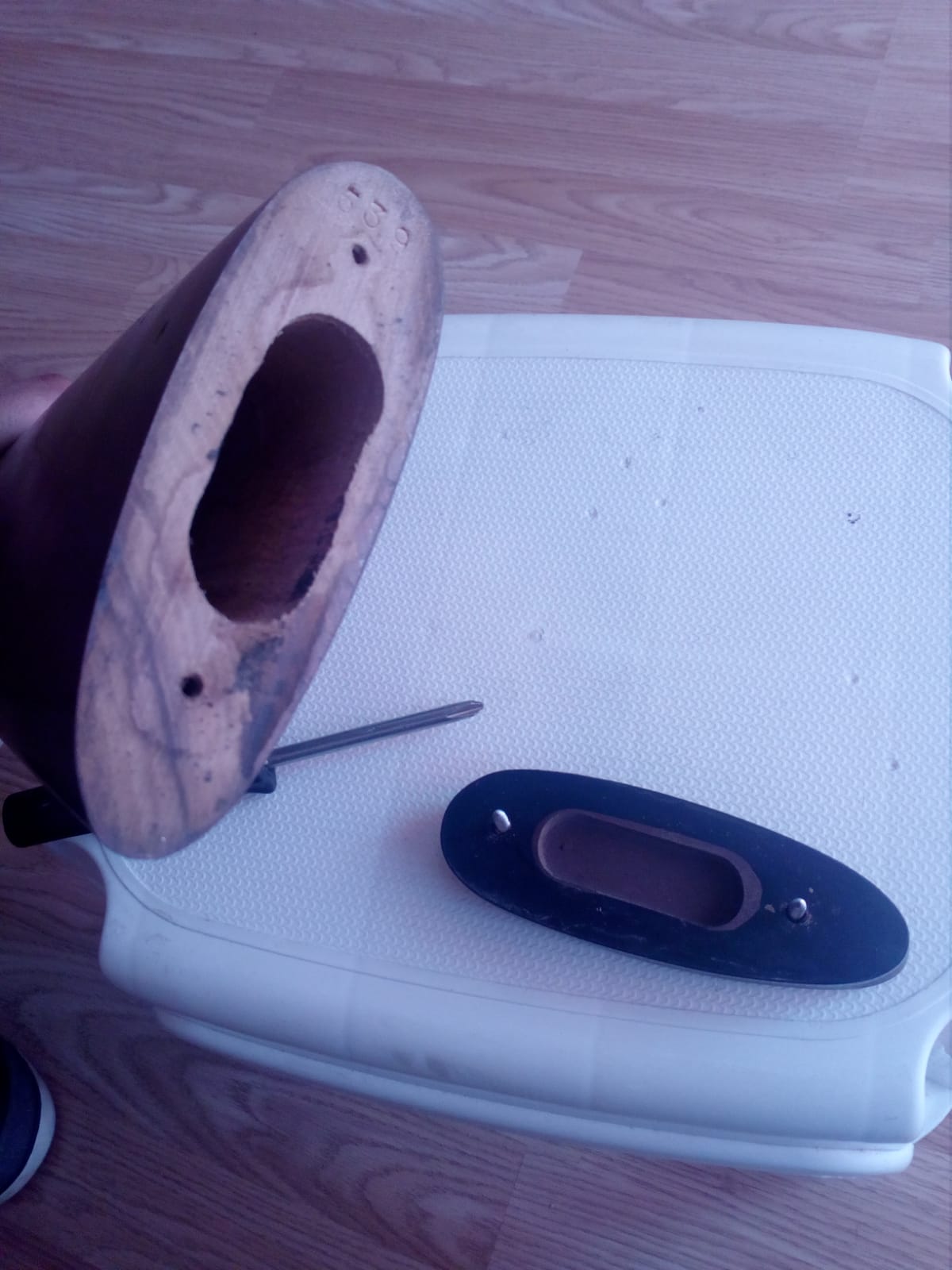 3-Desmontar pletina ,para que no haga presion contra la madera y sacar el pasador lateral y salga todo bien.