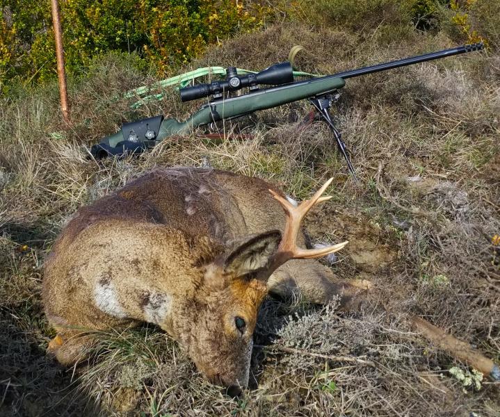 Espectacular foto, tanto para el jabalí que me parece de exposición, pues tiene unos colores y boca muy guapos y el rifle que da la sensación de tener un cañón de artilleria ,más que nada por longitud, por otra parte necesaria para los tiros que has hecho con el. Una pasada.