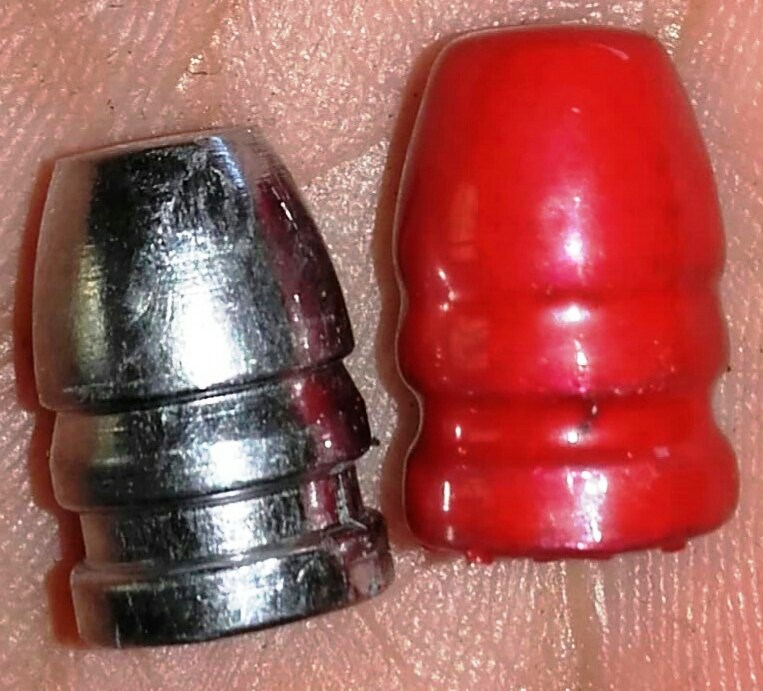 En mi caso calente un poco las puntas, las menti en la pintura y removi un minuto, luego las coloque en la bandeja y al horno hasta que me parecieron que quedaban medianamente decentes... no buscaba la perfeccion, simplemente saber si la pintura se agarraba bien al plomo asi que no pase por colador ni nada parecido(de ahi el grosor al poner una punta al lado de la otra .358-.370) y vaya que si se agarra ademas de que la prueba del martillo la paso sin problemas, ahora a perfeccionar la tecnica.