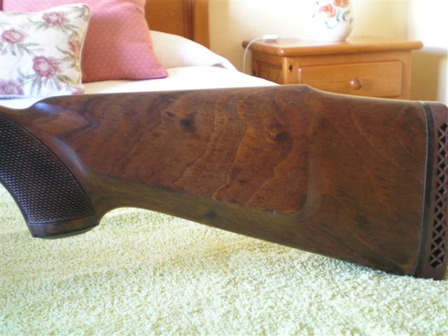 Hola: Pongo en venta , ademas del "Gredos", este otro Santa Bárbara en calibre 308, modelo Luxe, con una maderas fuera de lo común en estos rifles. El arma esta en perfecto estado de funcionamiento, pero con uso para caza del anterior propietario por lo que tiene algunos arañazos en el cañon ,deposito de munición, etc..Tiene por contrapartida el habérsele modificado las miras, dotándolo de alza micrométrica LPA y punto de mira de fibra.Con ello se soluciona el problema de las miras originales excesivamente bajas, mejorando enormemente el encare y precisión de miras y permitiendo por la altura tirar con bases puestas sin visor.Esta operación en el armero valió ,algo más de 200 euros.Las maderas están al aceite con linaza, aunque admite alguna mano más, al gusto del propietario, antes de acabarla con cera si se quiere.De la calidad y construcción de estos rifles poco más hay que decir.El arma va sin las bases que aparecen en alguna foto.