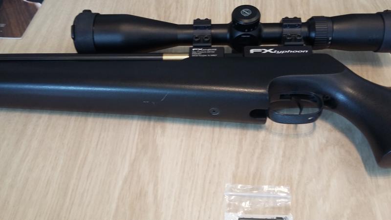 Potencia regulable: Tiene el martillo de origen de 24j y otro fabricado más ligero con el que da unos 16j tras aflojar la tuerca de regulación de potencia de detrás del Breech. Muy precisa.Tiene una ligera marca blanca por debajo del guardamanos que se aprecia en las fotos. Si nó está impecable y con muy poco uso. Trae la punta roscada para acoplar moderador standard y un tapon/embellecedor para protegerla cuando no se usa moderador.A toda prueba.