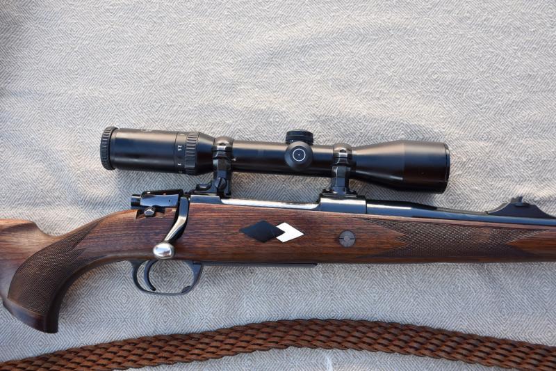 Heim sr 20 con visor Smith & Bender de 1,5 a 6 X 42, tanto el rifle como el visor estan muy cuidados, solo lo he usado en unas ocho o diez monterias . El calibre ya lo conoceis , abate todo lo que toca y la coz no es tanto como se dice , me atreveria a decir que menos desagradable que el 300, las bases son fijas , de calidad , creo que son unas Millet.