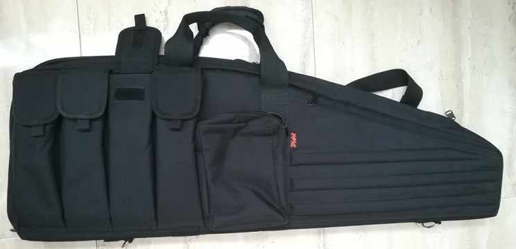 Por último, el maletín semirrígido (en algunos sitios lo venden como "bolsa táctica de transporte", pero me parece un nombre un poco pretencioso) es de la marca ZASDAR, de color negro y material resistente similar a la cordura (no me preguntéis más, que me pierdo con esas cosas). En su día lo compre (en la Armería Marcial, de Ourense) por 50,00 €.