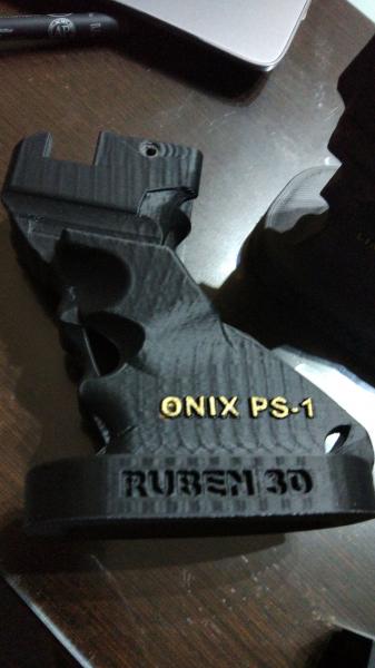 Con ligeras modificaciones en la forma de anclaje, y unión con la pistola, podría valer para casi que cualquier modelo.........igual, la parte izq. debería ser mas plana, en caso de diestros, para zurdos, al revés, y ojo, que no es ninguna mala critica....... :D