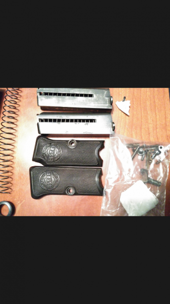 Vendo el despiece completo de esta pistola. Dos cargadores. Cachas de pasta. Un pasador pequeño en L, de la empuñadura creo que era, se rajo al sacarlo. No se nota pero lo aviso está rajado.