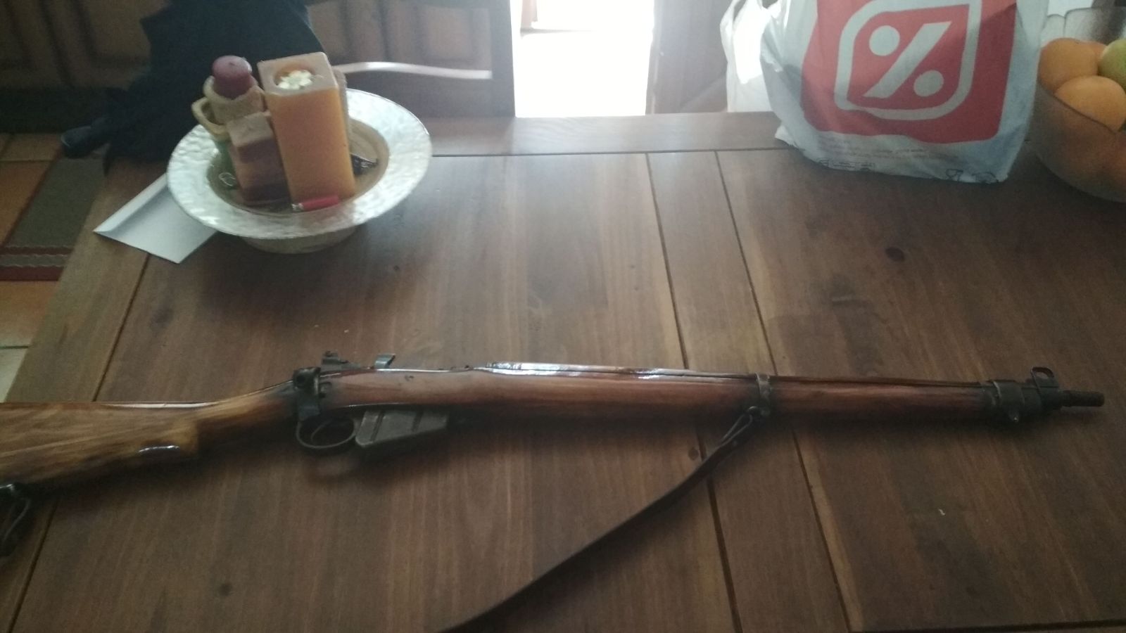 Por favor, no "repares" ni "restaures" la madera de un lee enfield ni de ningún otro fusil militar , ni menos aún repavones. Terminarás arrepintiéndote y habrás arruinado su valor y carácter. Respeta la historia del arma y el legado que vas a disfrutar.