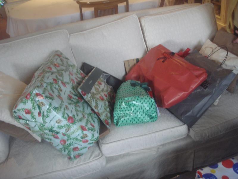 Y ahora el desparrame en casa de mis sobrinos, tres (3) sofás llenos de paquetes, claro que son cinco (5) de familia y todo se multiplica por 5.