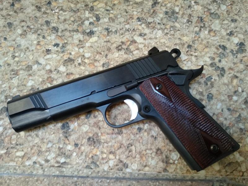 Mi Norinco 1911A1....................Originalmente .45acp, la corredera cromada y mi kit de conversion 9mm la corredera Azul. Super preciso y fiable con los dos calibres.