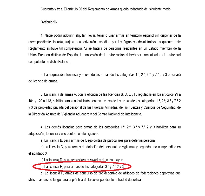 Según he leído yo, la licencia E continuará amparando las armas de la categoría 3 (carabinas .22LR, escopetas y Ac>24'2 J)...o se me escapa alg? :oops: