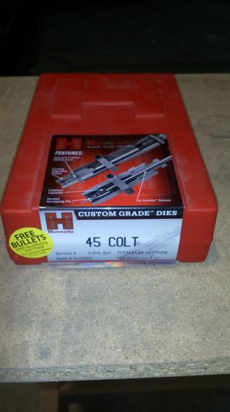 Uno marca Hornady del calibre 45LC con lo tres dies, el shell holder y se entregan