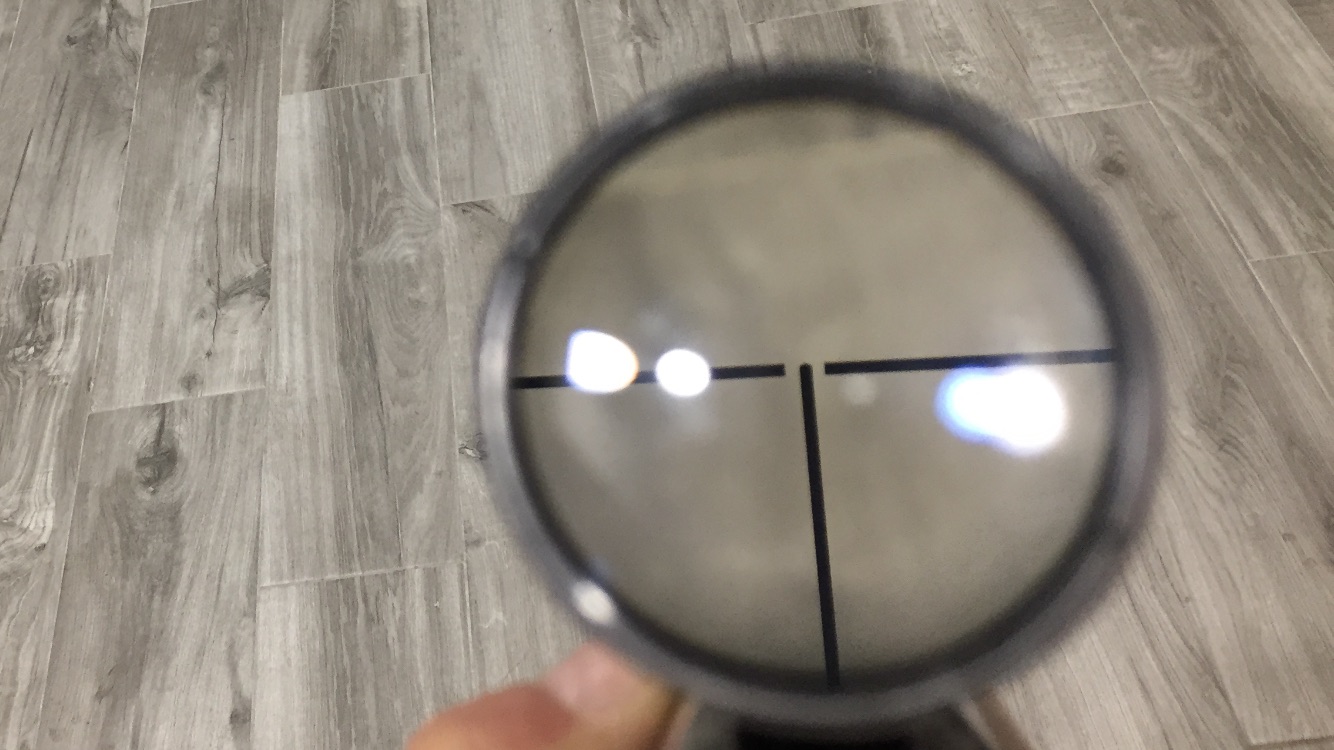 El estado del visor, tiene algunas marcas normales del uso ya que es un visor antiguo. Las lentes se ven bien. Pongo fotos de la retícula. Se puede probar en Huesca