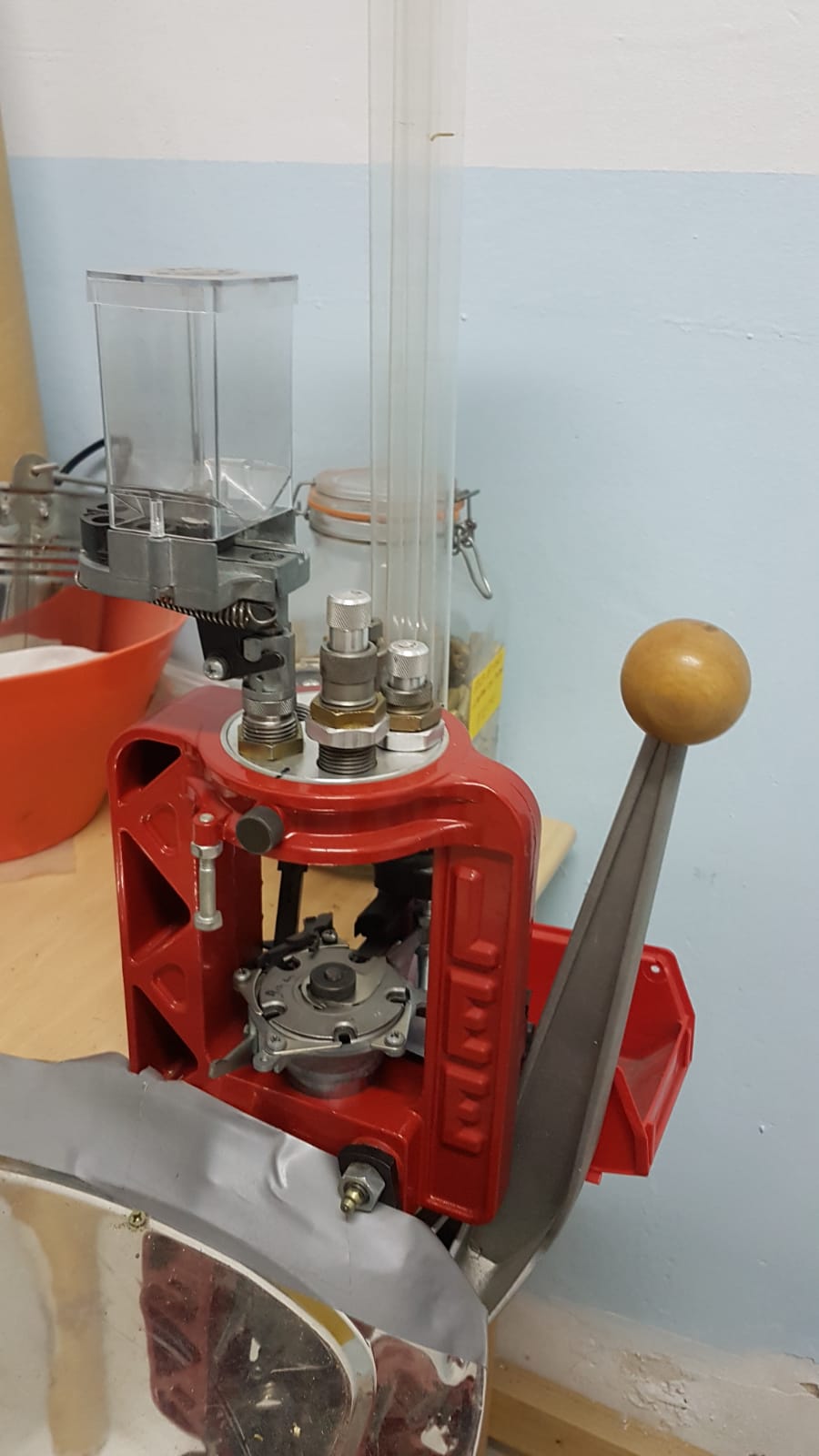 Se vende máquina de recargar lee load Master, con plato para recargar calibre .32 y 9mm los conductos de las vainas con embudo, una máquina perfecta, cada vez que mueves la palanca sacas una bala terminada, tiene 5 estaciones, no se incluyen Dies. Para más dudas o preguntas, si queréis llamarme directamente lo hablamos 650752340, abstenerse ofertas ridiculas.