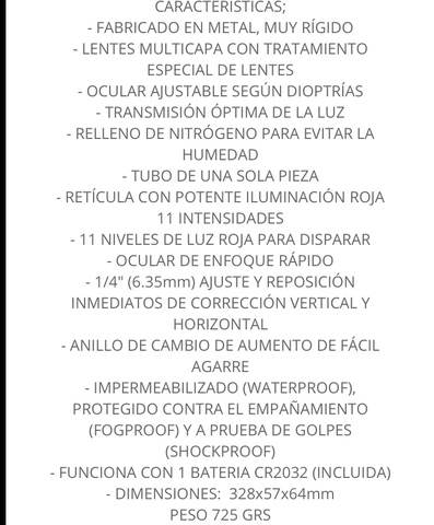 Re: Reservado. Visor Sutter Premium 3-12x50 Reticula Iluminada