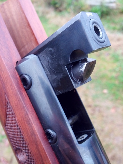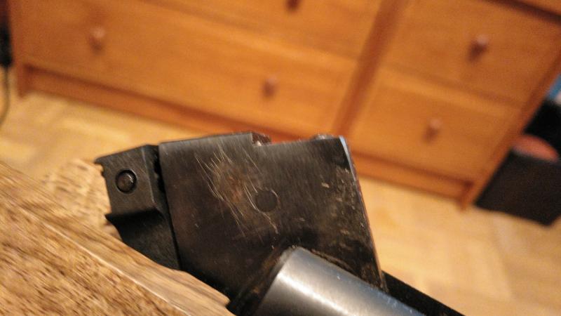 Coincide en la zona de cierre de cañón con la recamara, porque al amartillar la carabina hay pequeñas marcas de roce también,
