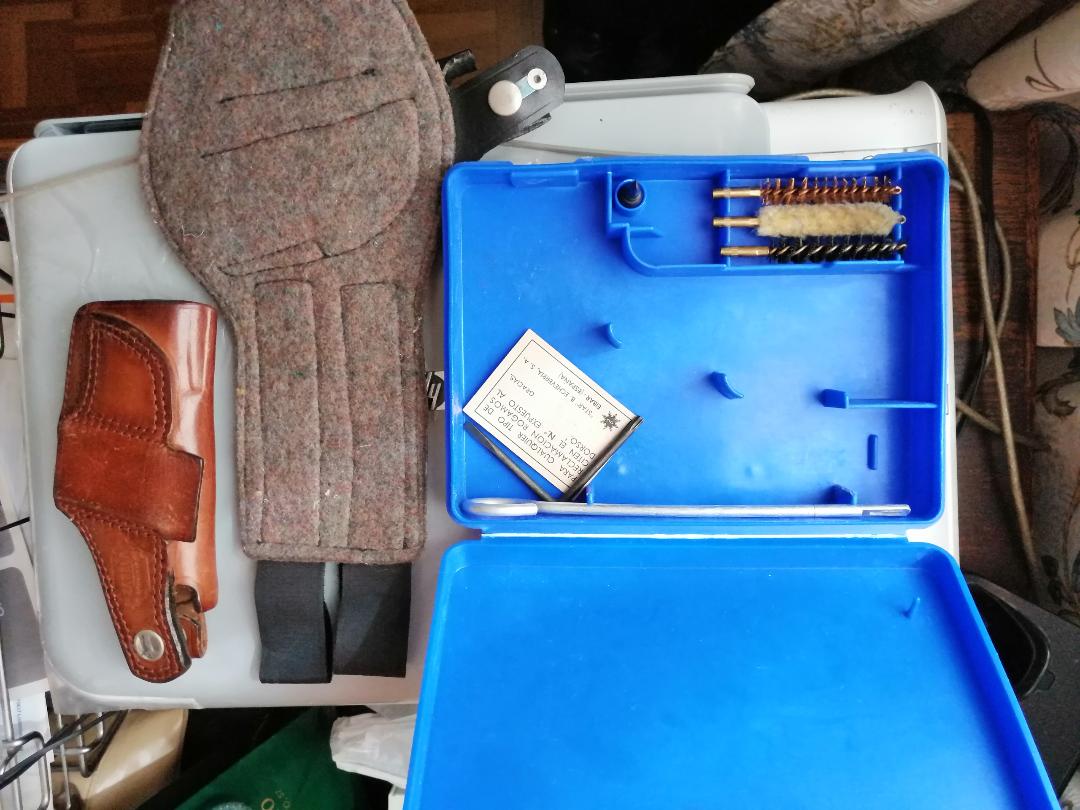 Vendo caja de pistola Firestar en el estado y con los elementos de limpieza que se ven en la foto, mas dos fundas de piel, una de cinturón y otra tobillera sin estrenar. Precio del lote 50,-- €, nuevo precio 40,--