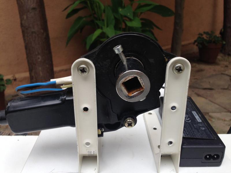 Como podéis ver, el motor está fijado a las dos escuadras de estantería y estas, a su vez, al tablero, mediante tornillos autorroscantes de madera.