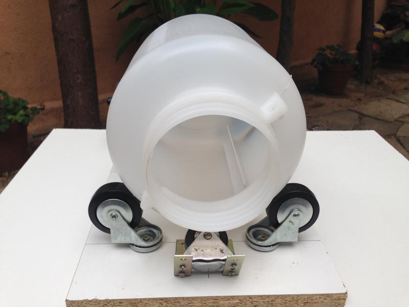 g) El montaje, en general, es válido, funcionó bien, las ruedas permitían rodar bien el bidón, la frontal retenía el bidón para que no se saliese, etc.