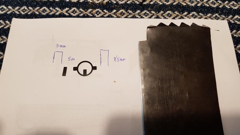 he cogido una de las chapas de aluminio troquelado que vienen con la carabina, he recortado un trozo de radiografía al mismo tamaño, pero 3,5 mm mas larga y la he pegado con superglue.