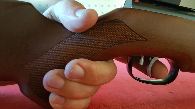 una vez montado la posición del disparador me resulta muy natural y mucho mas cómoda que antes, siendo bastante parecida a la de mi air arms tx 200.